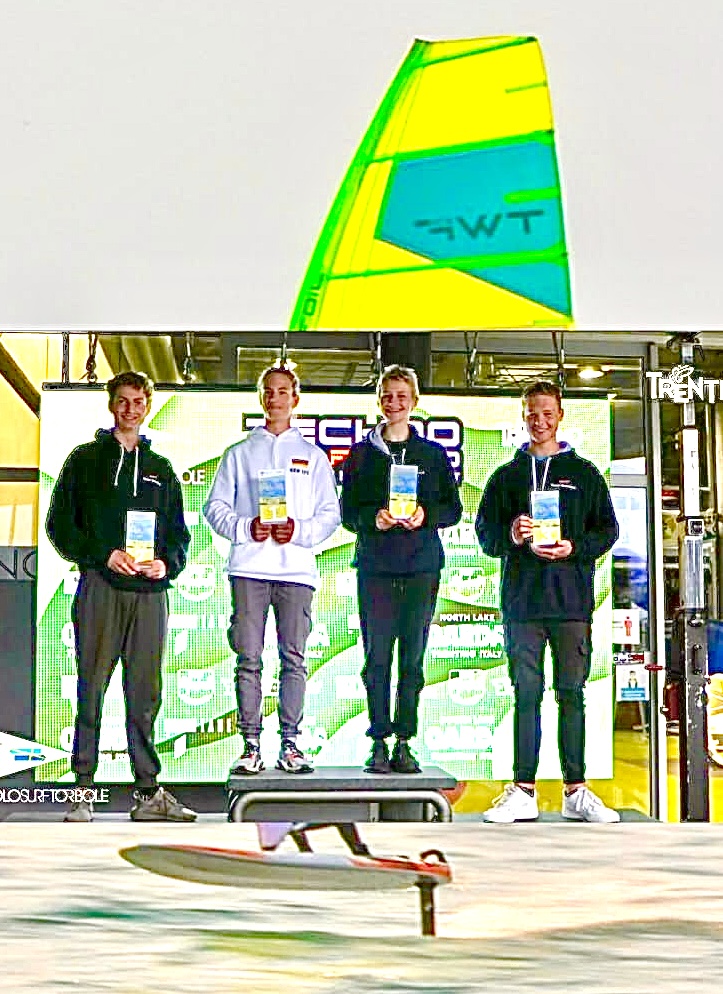 Gesurft wird in der neuen Einheitsklasse Techno Windfoil (TWF). Dieses ultramoderne Board ist ein Foilboard, welches sich mit zunehmender Geschwindigkeit aus dem Wasser hebt und dann nur noch auf einer noch im Wasser befindlichen Flügelkonstruktion über das Wasser schwebt. Dies nennt man Foilen. Die Surfabteilung RTGW hatte im Winter zwei solcher Foilboards u a. eben auch für Max angeschafft. Mit ganz viel hartem Training auf dem Wasser und auch mit Unterstützung des Weseler Windsurf-Profis Dennis Müller hat sich Max auf diesen Saisonhöhepunkt am Gardasee vorbereitet.